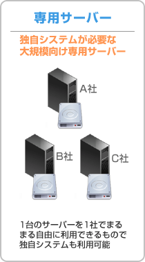 レンタルサーバーは大きく分けて「共用サーバー」、「VPS(仮想専用サーバー)」、「専用サーバー」の3つの形態に分類されております。